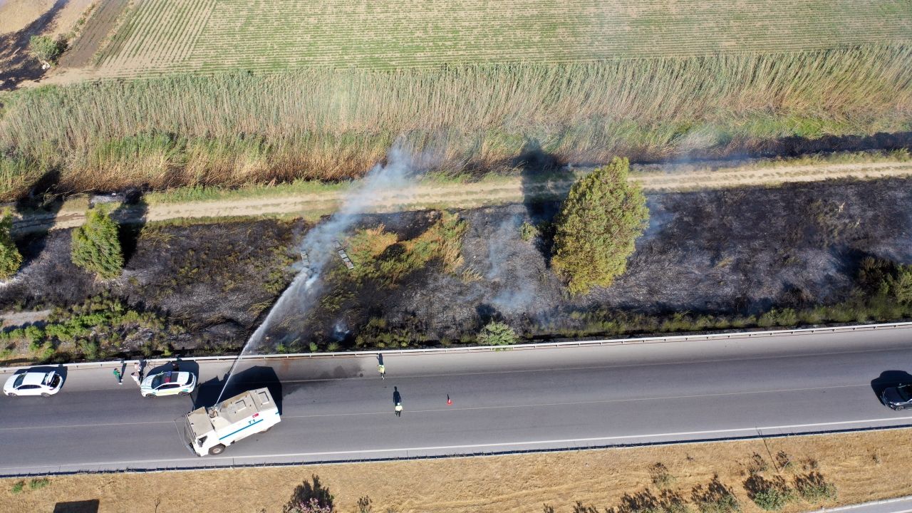 Yangının yolun kenarında olmasından dolayı trafikte aksamalar yaşandı. Bunun üzerine trafik polisleri bölgede önlem aldı.
