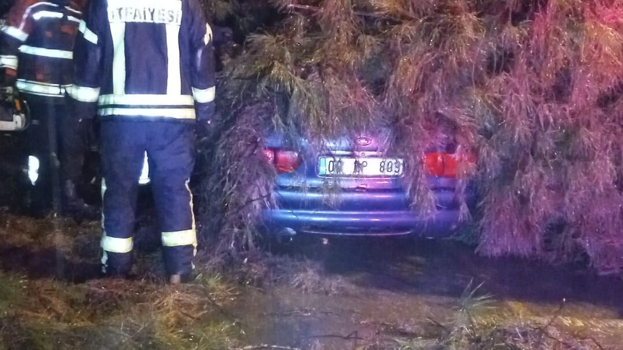Melek FIRAT/ AYDIN, (DHA)- AYDIN'ın Efeler ilçesinde aşırı yağış nedeniyle bir ağaç, seyir halindeki otomobilin üzerine devrildi. Ağacın üzerine devrildiği otomobilde sıkışarak yaralanan karı-koca, ekipler tarafından çıkarılarak, hastaneye kaldırıldı.