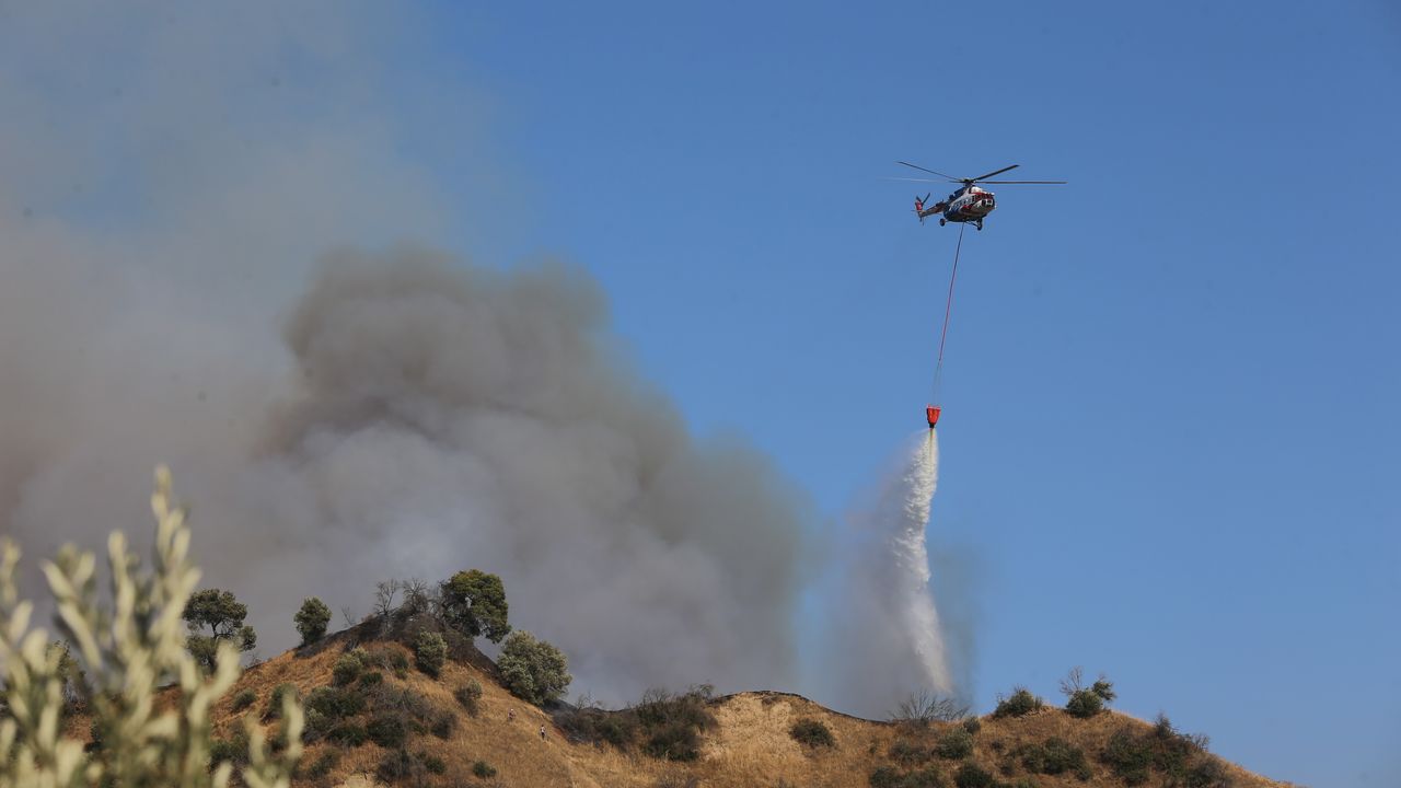 Ekipler yangını havadan ve karadan müdahaleyle kontrol altına almaya çalışıyor.