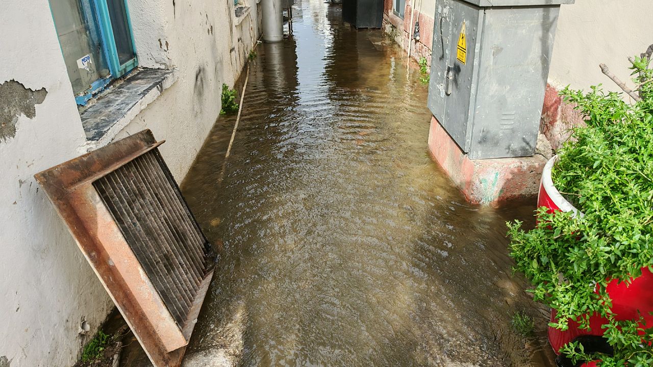 Kadri KAYA/AYVALIK (Balıkesir), (DHA)- BALIKESİR'in Ayvalık ilçesinde fırtına nedeniyle taşan deniz suyu sahilin hemen arkasındaki sokaklara kadar ulaşıp, geçişi kapattı.