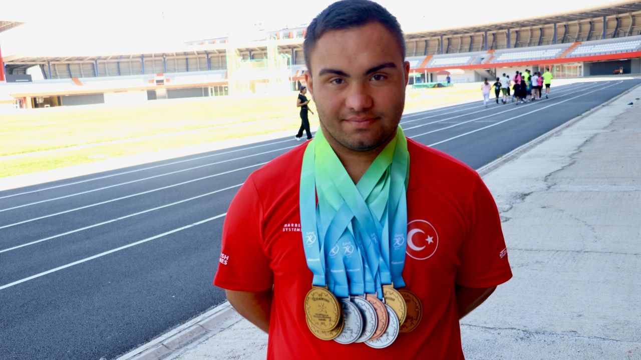 TRABZON (AA) - ENES SANSAR - Trabzon'da yaşayan down sendromlu Abdullah İnan, atletizmde başarıya doymuyor.