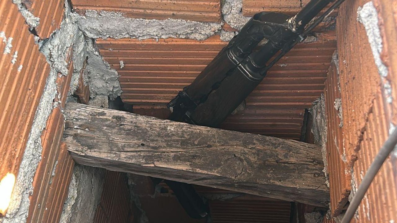 Zanlıların çatı katına kaçmasından şüphelenen polis ekipleri, binanın farklı kısımlarında da arama yaptı. Aramada, başka bir dairenin bacasından içeri atılmış AK-47 uzun namlulu silah, bacanın alt kısmında da bir şarjör ve balistik yelek bulundu.