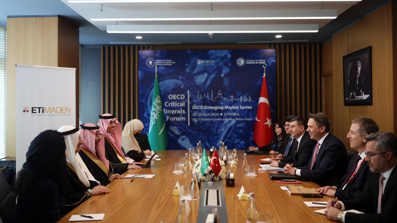 İSTANBUL,(DHA)- ENERJİ ve Tabii Kaynaklar Bakanı Alparslan Bayraktar, 'OECD Kritik Mineraller Forumu' kapsamında Suudi Arabistan Sanayi ve Maden Kaynakları Bakanı Bandar bin İbrahim Al-Khorayef ile İstanbul'da bir araya geldi.