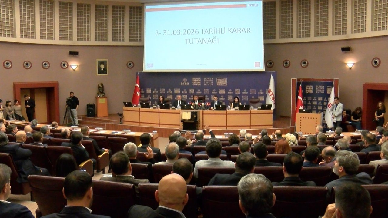 Memet Can YEŞİLBAŞ/ BURSA, (DHA)- BURSA Ticaret ve Sanayi Odası (BTSO) Nisan ayı meclis toplantısında konuşan Ticaret Bakanı Ömer Bolat, 'Bugün uluslararası kamuoyu da Türkiye'nin istikrarı, üretim kapasitesi, lojistik gücü, tedarik kabiliyeti ve ticaret hacmiyle öne çıkan güvenli bir liman olduğunu açıkça görmektedir. Biz de dış ticaretten sorumlu bir Bakanlık olarak bu tabloyu sahada net şekilde gözlemliyoruz' dedi.