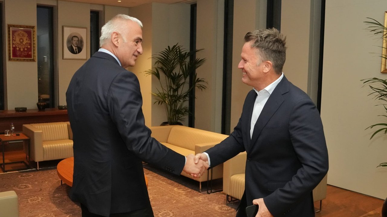 Kültür ve Turizm Bakanı Mehmet Nuri Ersoy, Jet2 CEO'su Steve Heapy ve Dertour Grubu Almanya Global Sözleşme Direktörü Joachim Seip ile bir araya geldi. Bakan Ersoy'un Antalya ve İstanbul'da gerçekleştirdiği temaslar hem mevcut performansın değerlendirilmesi hem de önümüzdeki döneme ilişkin yol haritasının netleştirilmesi açısından dikkat çekti. Kültür ve Turizm Bakanı Ersoy, görüşmeye ilişkin ayrıntıları sanal medya hesabından duyurdu. Ersoy, 'Avrupa'nın ve Birleşik Krallık'ın önde gelen tur operatörlerinden Jet2 CEO'su Steve Heapy ve Dertour Grubu Almanya Global Sözleşme Direktörü Joachim Seip ile bir araya geldik. Almanya ve İngiltere pazarlarında yürüttüğümüz iş birliklerini, 2026 yılı hedeflerimizi ve sezonun genel görünümünü kapsamlı şekilde değerlendirdik. Yılın ilk dönemine ilişkin rezervasyon eğilimleri, erken rezervasyon sürecindeki dalgalanmalar ve Paskalya döneminin etkileriyle birlikte sezonun geri kalanına yönelik talep görünümünü ele aldık. Jet2 ile yürüttüğümüz kampanyalar ve ilave aksiyonlar ile Dertour tarafında Almanya başta olmak üzere farklı pazarlarda hayata geçirilen çalışmaların etkilerini değerlendirdik. Türkiye'nin bu iki güçlü operatörün portföyündeki konumunu daha da ileri taşıyacak iş birliklerimizi kararlılıkla sürdürüyoruz' ifadelerini kullandı.