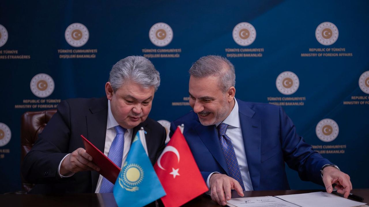 Dışişleri Bakanı Hakan Fidan ve Kazakistan Dışişleri Bakanı Yermek Koşerbayev tarafından, Türkiye-Kazakistan Ortak Stratejik Planlama Grubu 8'inci Toplantısı sonrası 'Türkiye Cumhuriyeti Dışişleri Bakanlığı ile Kazakistan Cumhuriyeti Dışişleri Bakanlığı Arasında 2026-2027 İşbirliği Planı' imzalandı. (DHA)