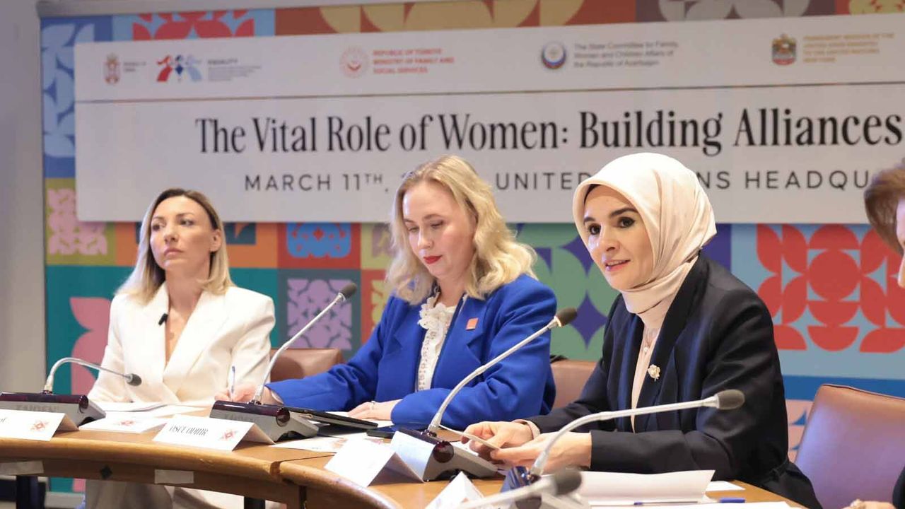 Aile ve Sosyal Hizmetler Bakanı Mahinur Özdemir Göktaş, New York'ta Birleşmiş Milletler (BM) Kadının Statüsü Komisyonu'nun (KSK) 70'inci oturumu kapsamında, Aile ve Sosyal Hizmetler Bakanlığı Kadının Statüsü Genel Müdürlüğü ile Türk İş Dünyası Konfederasyonu (TÜRKONFED) Arasında İş Birliği Protokolü İmza Töreni ve Bakanlık ile Sırbistan ortaklığındaki 'Kadınların Kritik Rolü: Güçlendirme İçin Stratejik Ortaklıklar' yan etkinliğine katıldı.