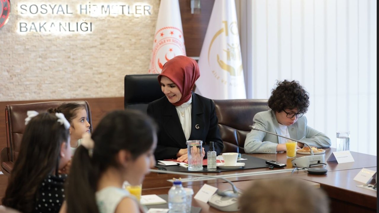 Bakanlıktan yapılan açıklamaya göre; Aile ve Sosyal Hizmetler Bakanı Mahinur Özdemir Göktaş, TBMM'nin açılışının 106'ncı yıl dönümü ve 23 Nisan Ulusal Egemenlik ve Çocuk Bayramı nedeniyle şehit ve gazi çocukları, Çocuk Hakları Komite Üyeleri ve bakanlık hizmet modellerinden yararlanan ailelerin çocuklarıyla bakanlıkta bir araya geldi. Kabuldeki tüm çocuklarla tanışarak bayramlarını kutlayan Göktaş, 'Bugün sizin gününüz. Her şey gönlünüzce olsun. Bizler sizler için çalışıyoruz. Yarın bu koltukların her birinde sizler olacaksınız. Yarın bu ülkenin bakanı, milletvekilleri, profesörleri, mühendisleri, astronotları sizin aranızdan çıkacak' dedi. Bakan Göktaş, çocuklarla sohbet de etti. Çocuklar, 23 Nisan'ın anlam ve önemine ilişkin hazırladıkları şiirleri Bakan Göktaş'a okudu. Çocukların dijital dünya ve sanal medya düzenlemelerine ilişkin merak ettiği soruları da yanıtlayan Göktaş, güvenli internet kullanımının önemini anlattı. (DHA)