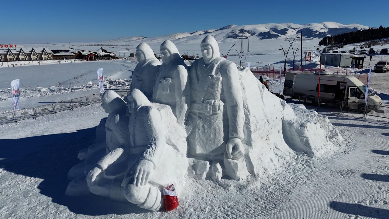 SARIKAMIŞ ŞEHİTLERİ ANISINA YAPILAN KARDAN HEYKELLER AÇILDI