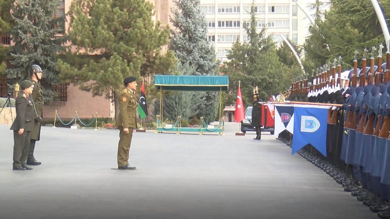 Genelkurmay Başkanı Orgeneral Selçuk Bayraktaroğlu, Türkiye'ye resmi ziyarette bulunan Libya Genelkurmay Başkan Vekili Korgeneral Selahaddin Al-Namroush'ı Genelkurmay Başkanlığı'nda resmi törenle karşıladı. İki ülkenin milli marşının çaldığı törenin ardından Orgeneral Selçuk Bayraktaroğlu ve Libya Genelkurmay Başkan Vekili Korgeneral Selahaddin Al-Namroush, Genelkurmay Başkanlığı'nda görüşme gerçekleştirdi. (DHA)