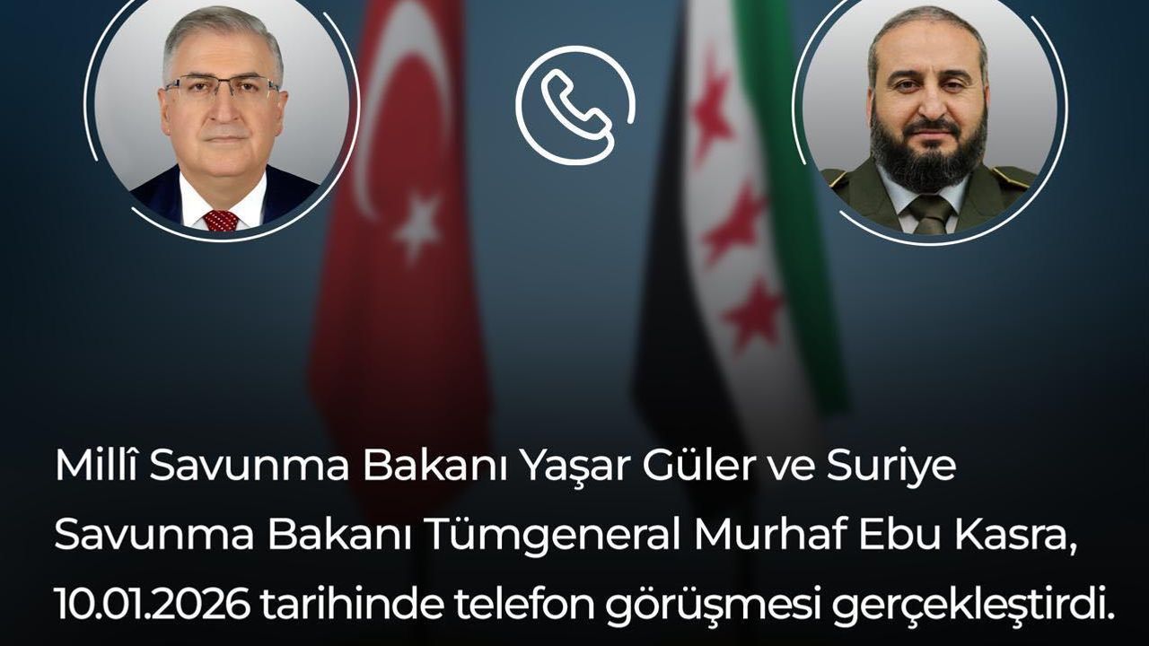 Millİ Savunma Bakanı Yaşar Güler ve Suriye Savunma Bakanı Tümgeneral Murhaf Ebu Kasra, bugün bir telefon görüşmesi gerçekleştirdi. Her iki Bakan, Suriye'deki son gelişmeleri görüştü. (DHA)