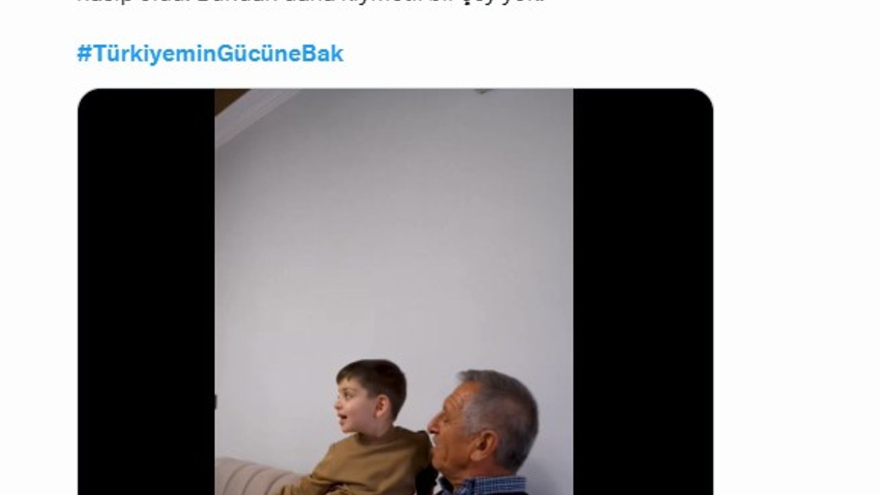 Çevre, Şehircilik ve İklim Değişikliği Bakanı Murat Kurum, depremin ardından bir başlarına kalan dede ve torunun hikayesini ve yeni evlerinin görüntülerini paylaştı. Çelik'in 'Devlet güçlü oldu mu her şey olur' sözlerine atıfta bulunan Bakan Kurum, 'Adıyamanlı Abdullah ağabeyimiz huzurlu yuvasında torunuyla yepyeni bir hayata başladı. Bizlere de gözlerindeki hüznü silmek, yarasını sarmak, yüzünü güldürmek nasip oldu. Bundan daha kıymetli bir şey yok' ifadelerini kullandı.