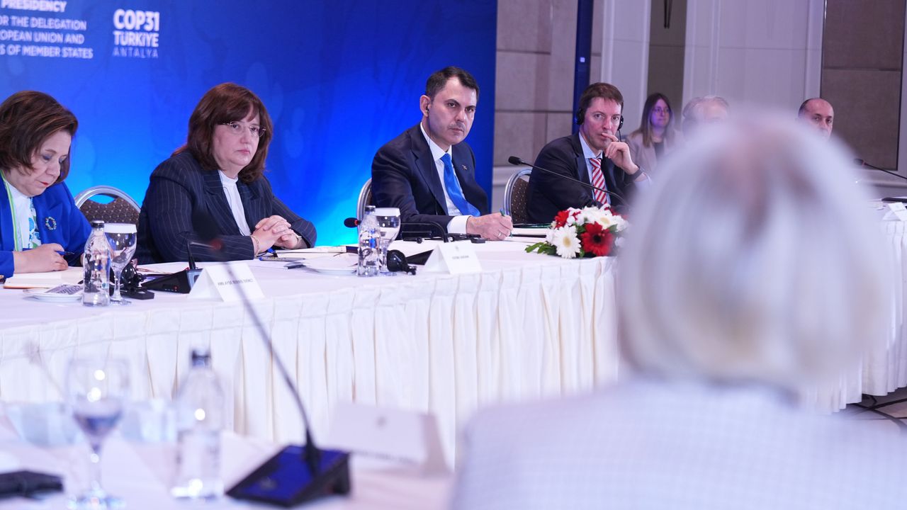 COP31 Başkanı ve Çevre, Şehircilik ve İklim Değişikliği Bakanı Murat Kurum, COP31 kapsamında Ankara'daki bir otelde düzenlenen 'Avrupa Birliği Delegasyonu ve Üye Ülkelerin Büyükelçileri ile Bilgilendirme Toplantısı'na katıldı. Toplantıda, Avrupa Birliği (AB) Türkiye Delegasyonu Maslahatgüzarı Jurgis Vilcinskas, Avustralya Büyükelçisi Sally Anne Vincent, Bakan Yardımcısı Fatma Varank, Dışişleri Bakan Yardımcısı Büyükelçi Ayşe Berris Ekinci, İklim Değişikliği Başkanı Halil Hasar, COP31 Ofisi Başkanı Mehmet Ali Kahraman ile ilgili bakanlıkların genel müdür ve müdür yardımcıları yer aldı. Bakan Kurum, toplantıda yaptığı konuşmada, 'Türkiye, COP31 ev sahipliği görevini yalnızca müzakere takvimini yöneten teknik bir süreç olarak görmüyor. Bu küresel vazifeyi, güveni güçlendiren ve iş birliğini derinleştiren bir süreç olarak değerlendiriyoruz. Her şeyi yerli yerince ortaya koyuyoruz. Ve diyoruz ki iklim rejiminin önündeki temel sorun, mevcut hedeflerin sahada karşılık bulmamasıdır. Yeni hedeflerin yazılması, artık küresel kamuoyunu ikna etmemektedir. Türkiye olarak, COP31 için yalnızca ev sahibi değiliz. Biz COP31'i iklim rejiminin yeni dönemde ihtiyaç duyduğu dönüşümün merkezine yerleşecek ve küresel ölçekte kalıcı etkiler üretecek bir platform olarak görüyoruz. Bugün iklim rejiminin önündeki temel sorun, hedef eksikliğinden ziyade uygulama açığıdır. Bu nedenle COP31 vizyonumuzu 'Uygulama COP'u' üzerine inşa ediyoruz. Çünkü biz iklim krizi için artık 'sıfır tolerans' noktasında olduğumuzu biliyoruz' ifadelerini kullandı.