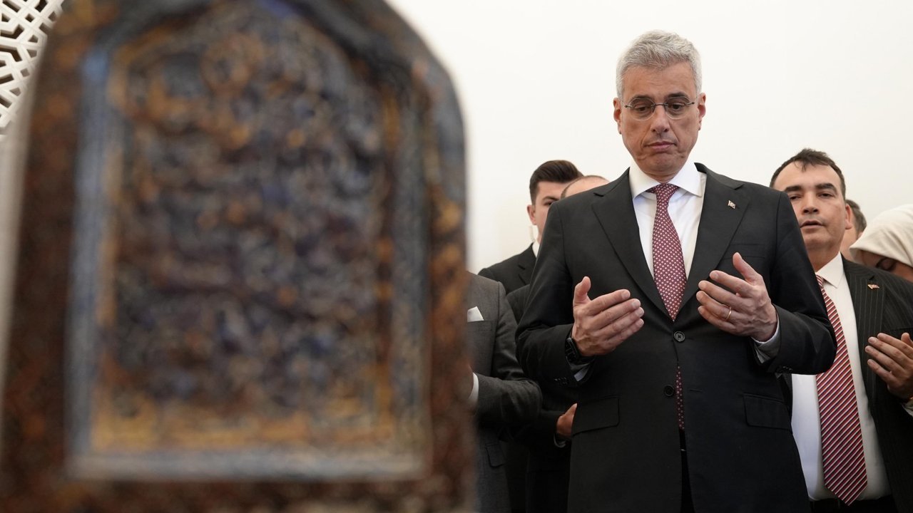 Sağlık Bakanı Kemal Memişoğlu, sanal medya hesabından yaptığı paylaşımda, 'Peygamber Efendimizin (s.a.v) baba soyundan Kusam ibn Abbas'ın türbesini de içinde barındıran; Semerkant'ın ilk yerleşim alanı Efrasiyab Tepesi'ndeki Şah-ı Zinde Nekropolü'nü ziyaret ettik. 'Yaşayan Sultan' anlamına gelen bu mukaddes mekan; yüce dinimiz İslam'ın bu topraklardaki köklü geçmişinin ve bizlere miras kalan manevi emanetlerin en özel duraklarından biri. Bu derin manevi iklimi teneffüs ederken; medeniyetimizin sanata, mimariye ve ebediyet tasavvuruna verdiği büyük önemin izlerini bir kez daha müşahede ettik. İnancımızın, tarihimizin ve ortak kültürümüzün sönmeyen kandilleri olan bu mukaddes eserlerin gölgesinde; bu kadim toprakları İslam'ın nuruyla şereflendiren aziz ecdadımızı rahmet, minnet ve hürmetle yad ediyorum' ifadelerini kullandı.