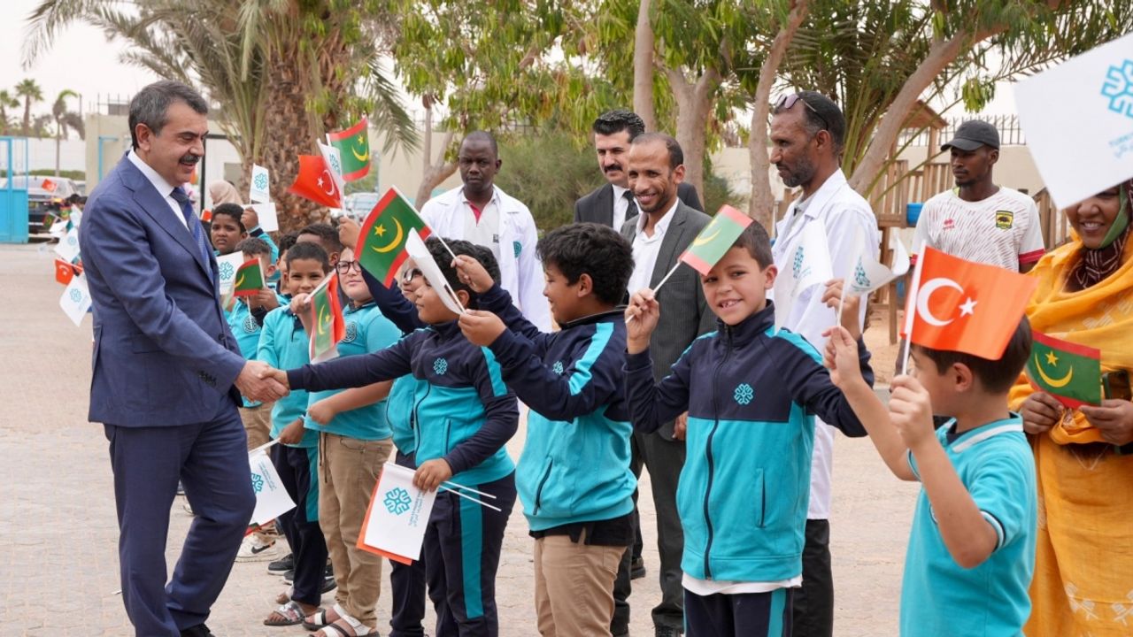 Bakanlıktan yapılan açıklamaya göre, ziyarette Türk ve Moritanya bayrakları taşıyan öğrenciler, Bakan Tekin'e çiçek sundu.