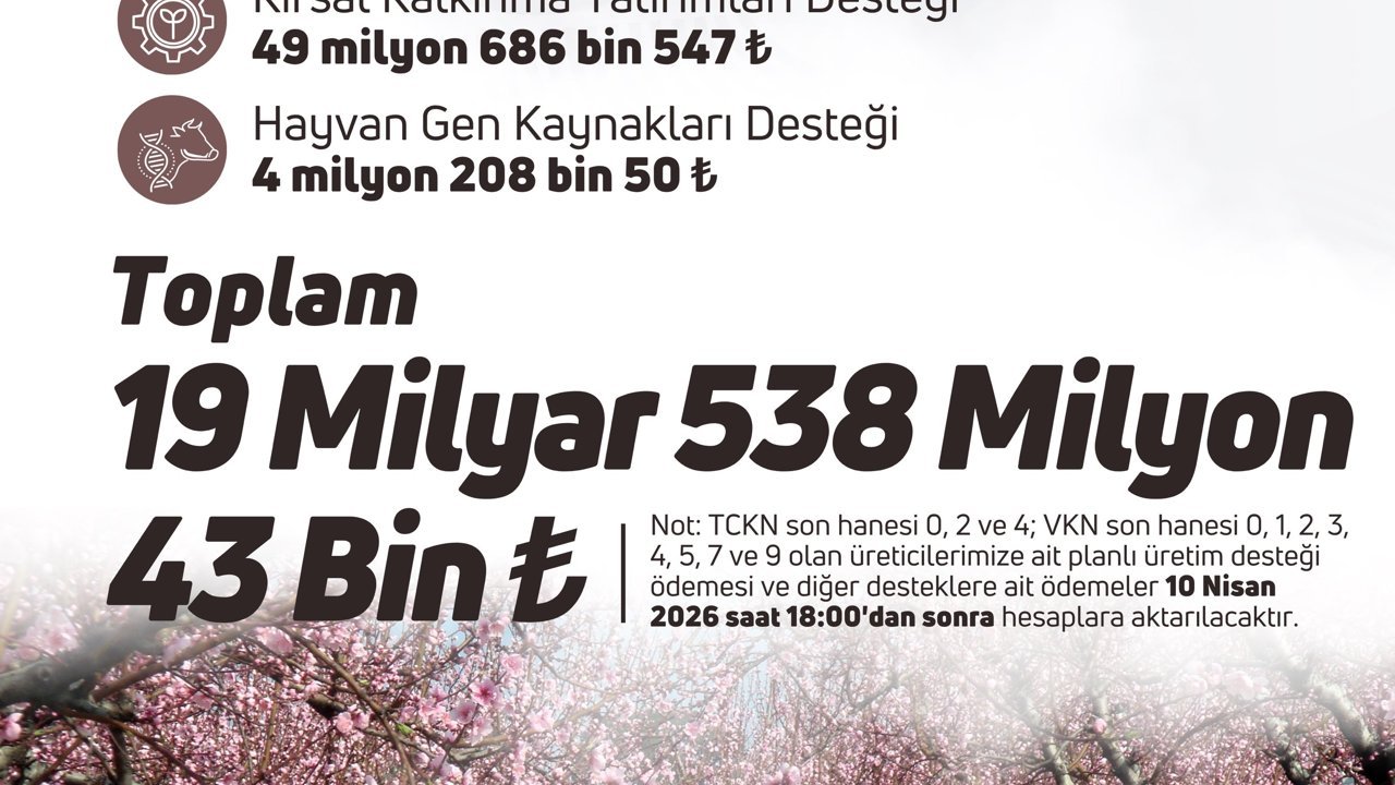 ANKARA, (DHA)- TARIM ve Orman Bakanı İbrahim Yumaklı, 19 milyar 538 milyon TL tarımsal destek ödemesinin çiftçilerin hesaplarına aktarıldığını açıkladı.