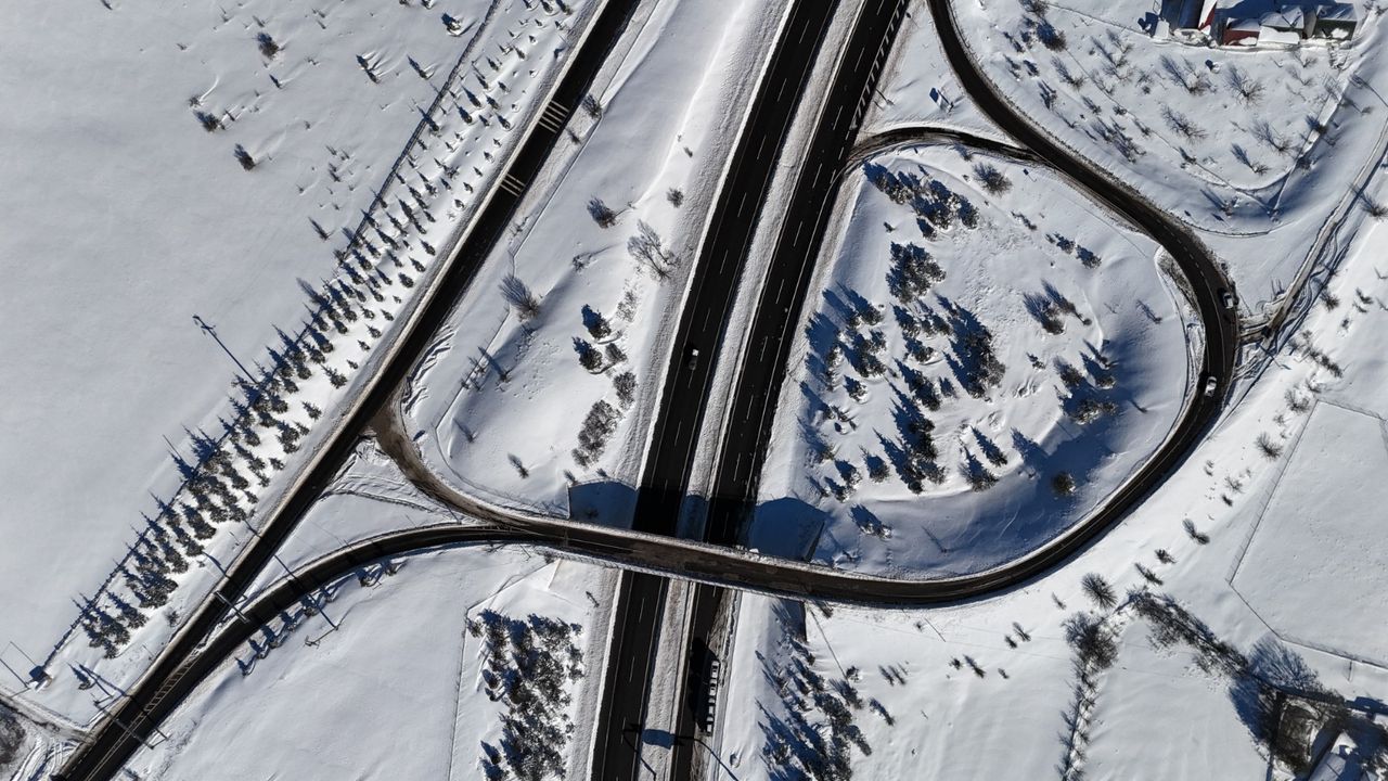 Yoğun kar yağışı ve ağır taşıtların makaslaması nedeniyle trafiğe kapanan D-100 Devlet Yolu'nun Gerede-Karabük il sınırı arasındaki kesimi, ekiplerin çalışması sonucu sabaha doğru açıldı. Yolda ulaşım normale dönerken, karla kapalı bölge dronla görüntülendi. (DHA)