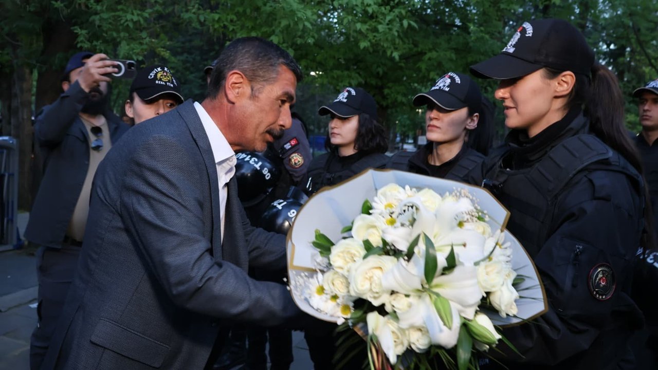 MADEN İŞÇİLERİNDEN POLİSLERE ÇİÇEK