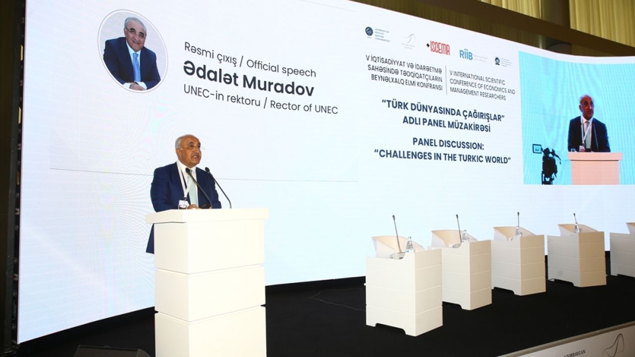 Haydar Aliyev Merkezi'nde yapılan panelin açılışında konuşan Azerbaycan Devlet İktisat Üniversitesi (UNEC) Rektörü Prof. Dr. Adalet Muradov, bugün bölge ve dünyanın birtakım sorunlarla yüzleştiğini söyledi.