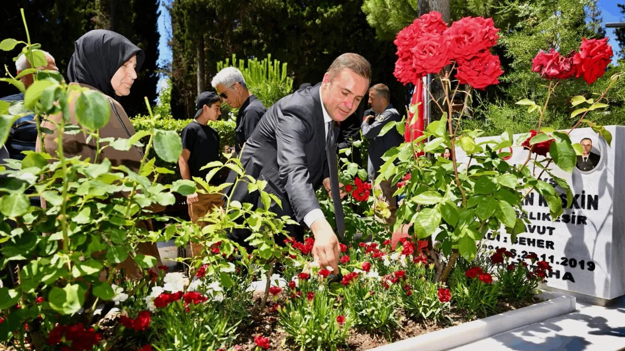 Şehitlikte şehit yakınlarıyla da bir araya gelen Başkan Akın, “Güzel vatanımız için canını hiçe sayan, milletimizin sonsuz huzur ve mutluluğu için topraklarımızı kanlarıyla sulayan tüm şehitlerimizi; minnet, şükran ve saygıyla anıyorum. Şehitlerimizin bize emanetleri olan ailelerine, yakınlarına en güzel hizmeti vermek boynumuzun borcudur. Şehit ailelerimize ne yapsak vefa borcumuzu ödeyemeyiz. Bu cennet vatan sizlere minnettardır.” ifadelerini kullandı.