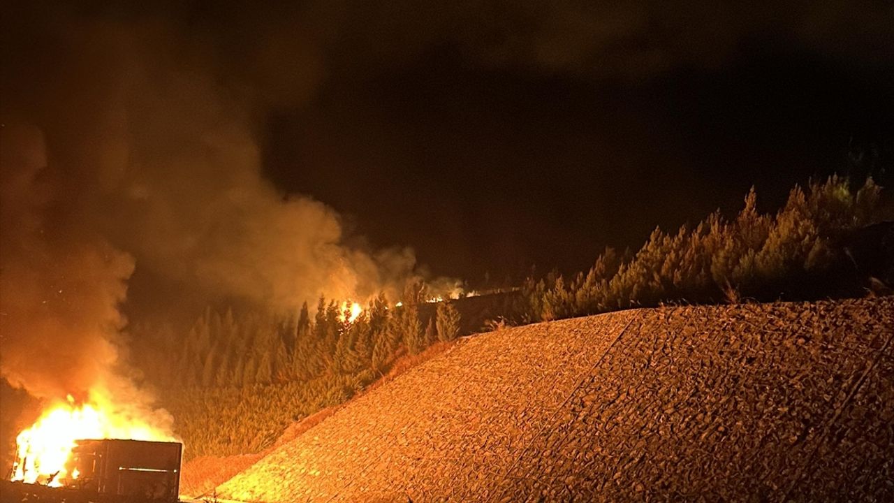 BALIKESİR (AA) - Balıkesir'in Savaştepe ilçesinde otoyolda devrilen kamyonun alev alması sonucu çıkan ve ormanlık alana sıçrayan yangın söndürüldü.