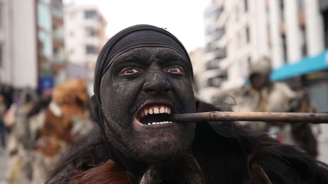İşgal yıllarında düşman devriyelerini korkutmak için koyun, keçi postu giyen, kendilerini baca kurumu ve soba isiyle boyayan, at kuyruğu, çan ve değneklerle korkutucu görünüme kavuşan deri işçilerinin canlandırıldığı bölümde, bazı çocukların kaçtığı görüldü.