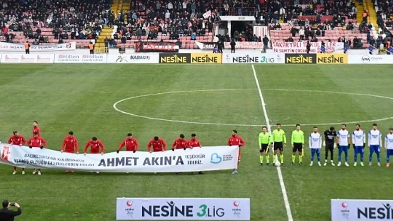CHP Balıkesir Milletvekili Serkan Sarı, Altıeylül Belediye Başkanı Hakan Şehirli, Balıkesirspor Kulüp Başkanı Abdullah Bekki ve taraftarlarla maç coşkusunu yaşayan Başkan Akın’ın takıma desteklerinden dolayı kırmızı beyazlı futbolcular maç öncesi seremonide “Balıkesirspor kulübümüze vermiş olduğu desteklerden dolayı Balıkesir Büyükşehir Belediye Başkanı Ahmet Akın’a teşekkür ederiz” yazılı pankartla sahaya çıktılar. Pankart, taraftarlardan da uzun süre alkış aldı.
