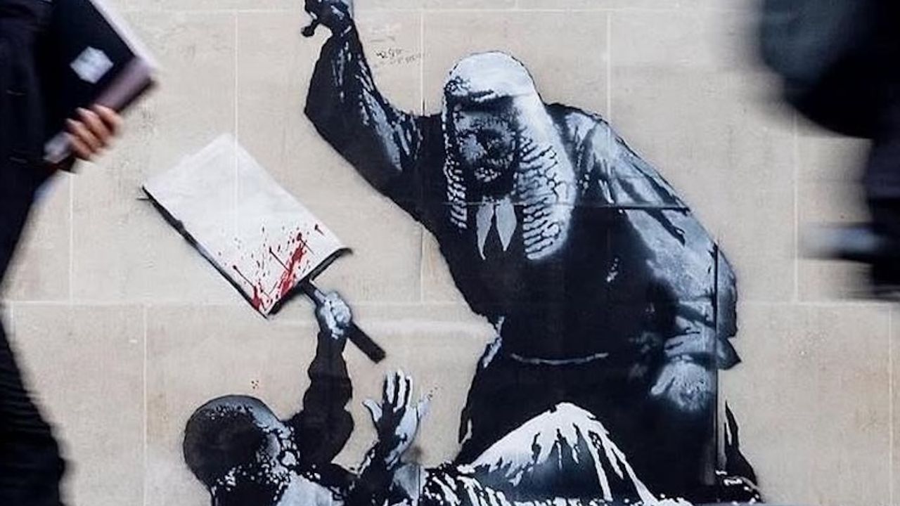 Dünyanın farklı yerlerinde yaptığı şablon tekniğindeki grafitilerle tanınan ve gerçek kimliği bilinmeyen İngiliz sokak sanatçısı Banksy, Londra'daki Yüksek Mahkemenin duvarına yaptığı yeni resmini Instagram hesabından paylaştı.Banksy'nin yeni duvar resminde bir hakim, yerde yatan ve elinde boş pankart tutan bir eylemciye hakim tokmağıyla vurur halde resmedildi.Duvar resminin tamamında siyah ve beyaz boya kullanılırken eylemcinin elindeki boş pankarta sıçrayan kan için kırmızı renk kullanıldı.