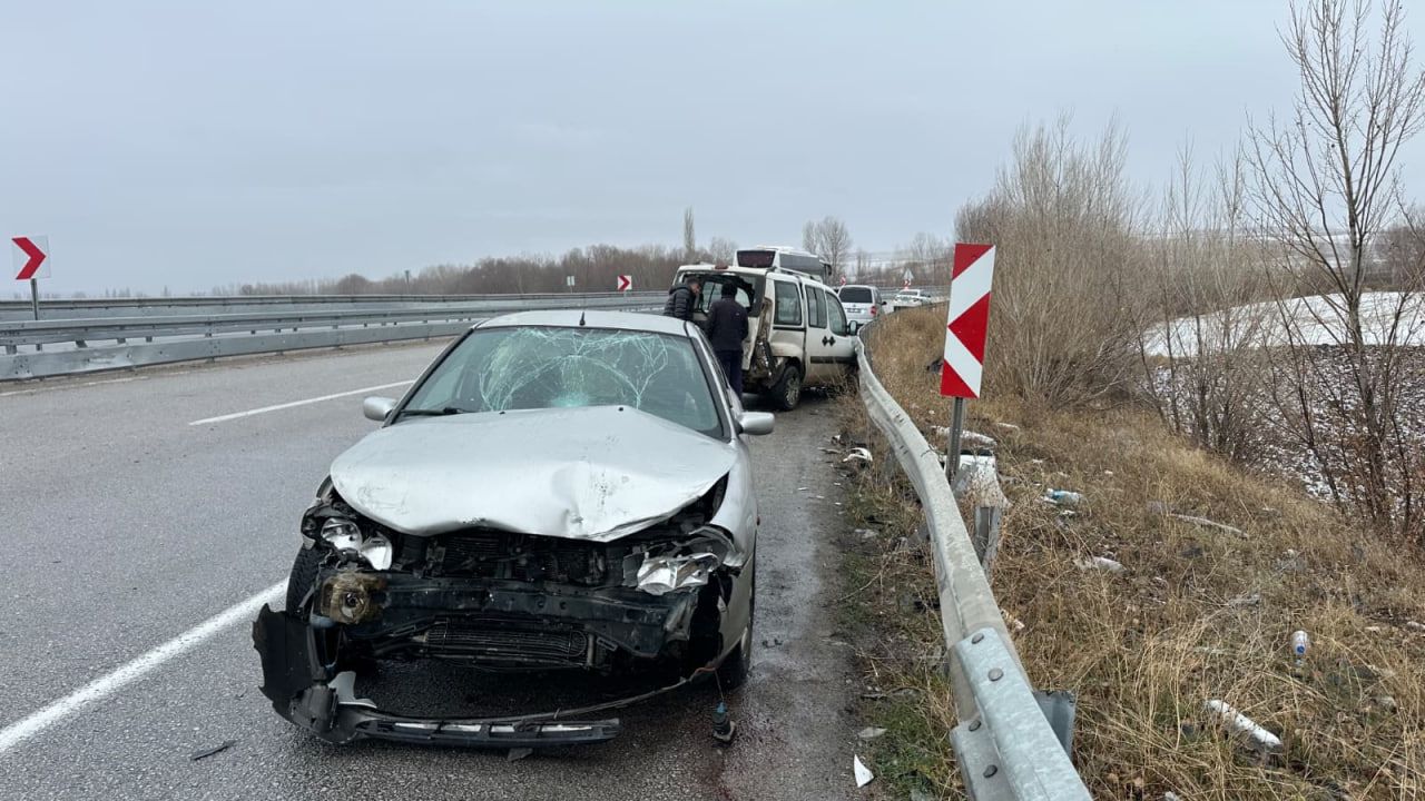 Hasan ÇETİN/ ALACA(Çorum), (DHA)- ÇORUM'un Alaca ilçesinde bariyerlere çarpan hafif ticari araçtan inenlere aynı istikamette giden otomobil çarptı. Kazada 5 kişi yaralandı.