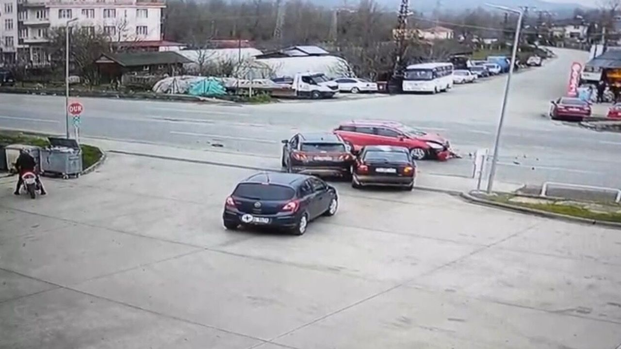 Ayhan ACAR/BARTIN, (DHA)- BARTIN'da bir akaryakıt istasyonun önündeki 3 aracın karıştığı kazada 2 kişi yaralandı. Kaza, güvenlik kamerasına yansıdı.