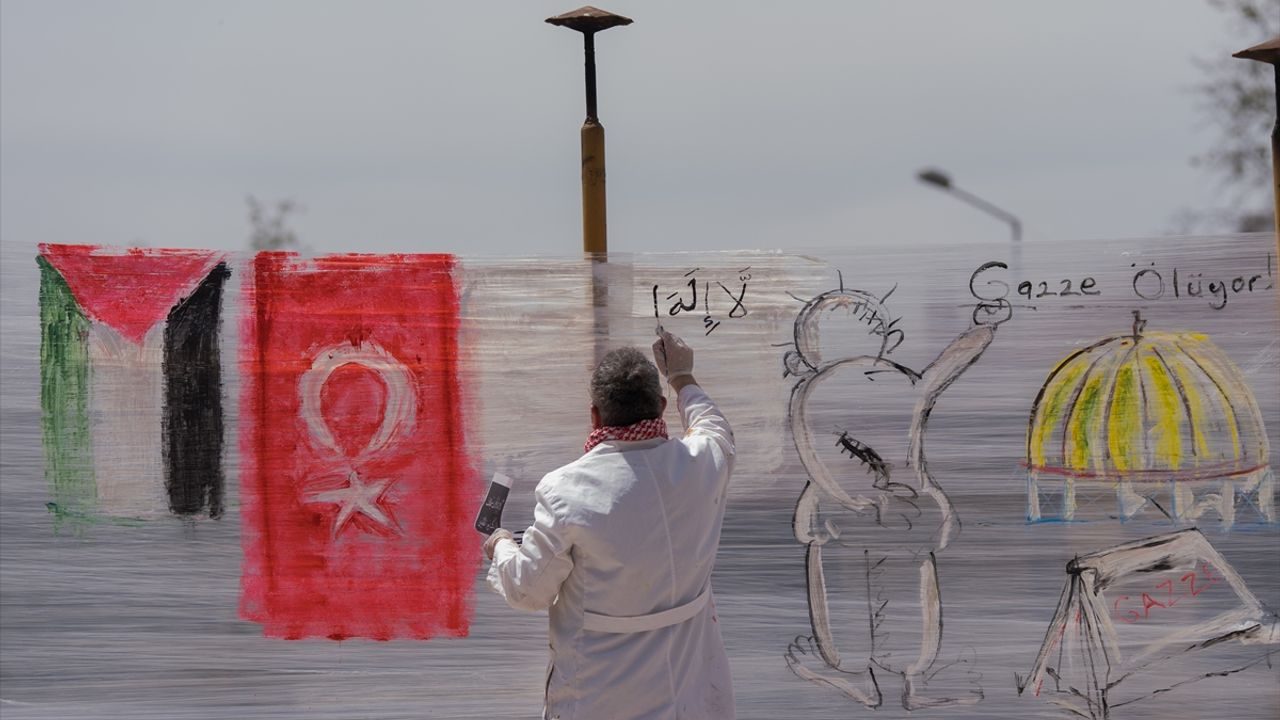 ANKARA (AA) - Akademisyen Kemal Sağlam, Ankara'da Gazze için tek kişilik eylem yaptı.