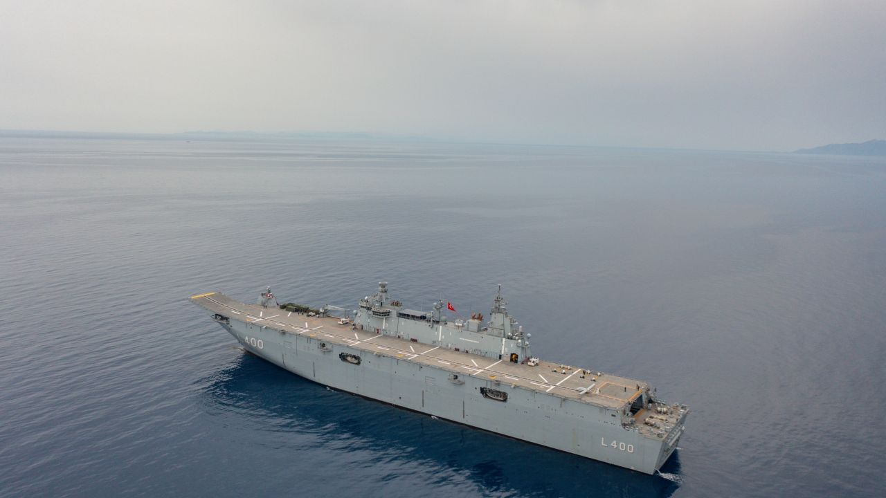 Atışlar sonrası Bayraktar TB3 SİHA'lar TCG Anadolu çevresinde kol uçuşu ve selamlama geçişi icra edecek.