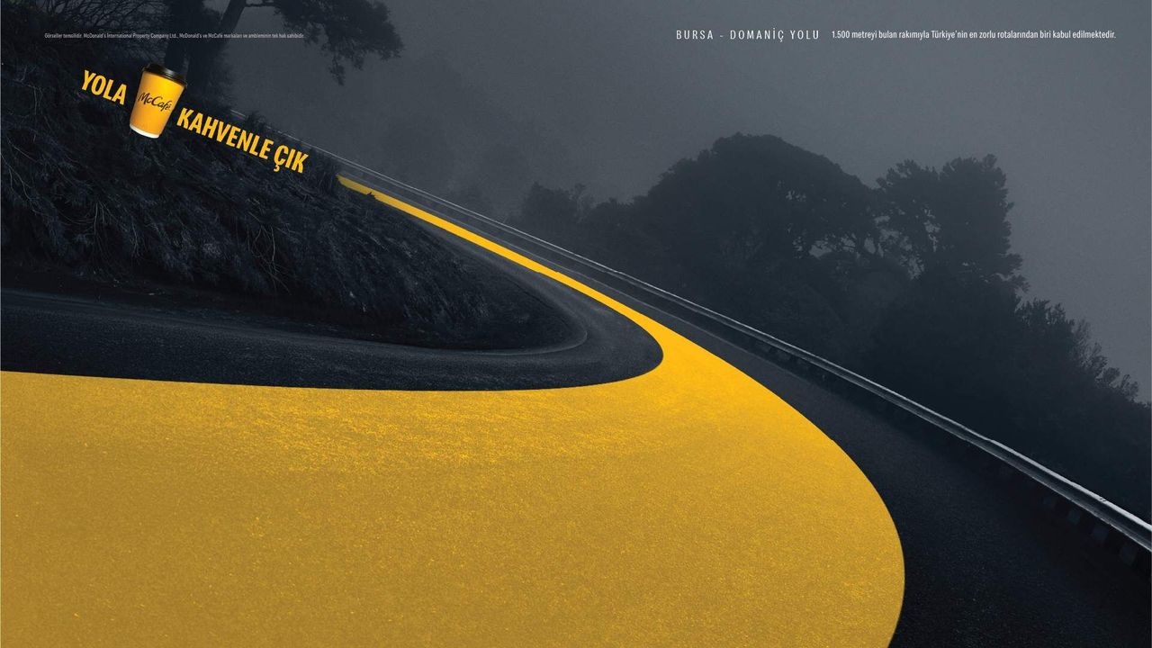 McDonald's Türkiye, tatil dönemlerinde artan seyahat hareketliliğinden ilhamla hazırladığı yeni kampanyasıyla küresel ölçekte bilinen bir mesajı yaratıcı bir yorumla ele aldığını bildirdi. Açık hava mecraları, dijital ve basılı yayınlara yönelik hazırlanan 'Yola Kahvenle Çık' kampanyası, McCafé'yi sürüş sırasında uyanıklık ve dikkat çağrışımı üzerinden konumlandırıyor. McDonald's'ın ikonik altın kemeri de zorlu yollarda sürücünün odağını simgeleyen güçlü bir yol çizgisine dönüşüyor.