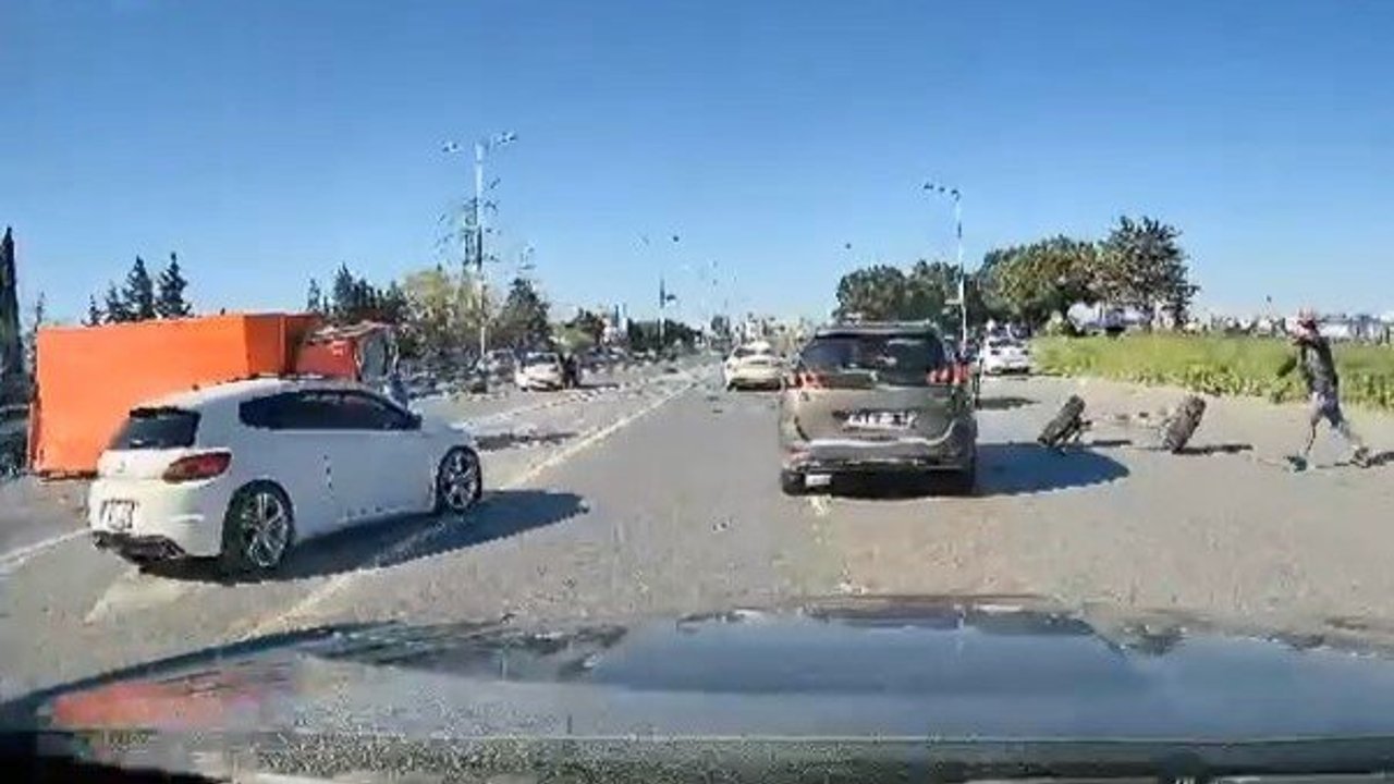 Otomobilin süratle gelerek birden fazla araca makas attığı ve sağ şeritten ilerleyen başka bir otomobili emniyet şeridini kullanarak geçmeye çalıştığı anlar araç kamerasına yansıdı. Görüntülerin devamında 34 PGH 253 plakalı otomobilin kamyonete çarptığı anlar da yer aldı. (DHA)
