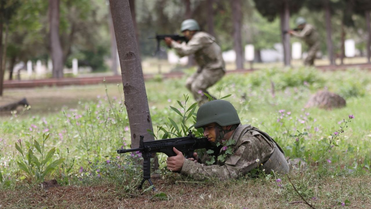 Antalya'nın Muratpaşa ilçesindeki Topçular General Niyazi Çelik Kışlası'nda silah altına alınan bedelli askerlik yükümlülerine, tüfekli-tüfeksiz yanaşık düzen eğitimi verildi.