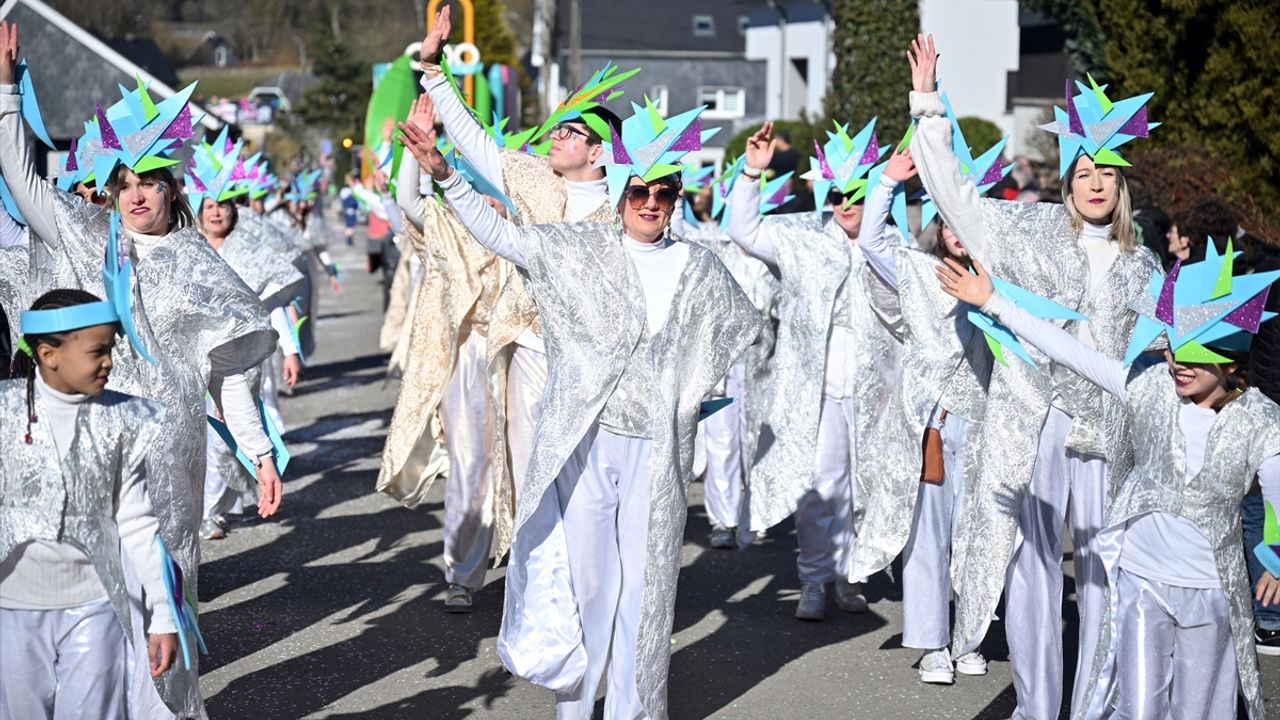 Rengarenk kostümleriyle köyün ana caddesinde dans ederek korteje katılan Faymonville sakinleri, izleyicilere konfetiler ve şekerler fırlattı.