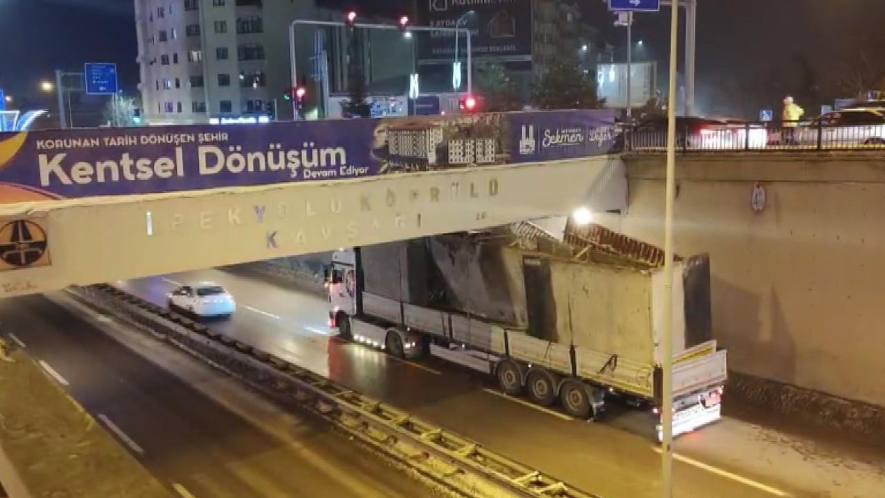 Olay, merkez Yakutiye ilçesindeki İpekyolu Köprülü Kavşağında meydana geldi. Beton blok taşıyan bir TIR, alt geçitte sıkıştı. Yükün yüksekliğini göz önünde bulundurmayan sürücünün dikkatsizliği sebebiyle alt geçidin ortasına kadar giden TIR, sıkışarak ilerleyemedi. İhbar üzerine bölgeye polis ekipleri sevk edildi. Yolun sağında sıkışan TIR'ı kurtarmak için çalışma başlatılırken trafik tek şeritten kontrollü olarak verildi. Ekiplerin uğraşları sonucu sıkıştığı yerden kurtarılan TIR, yoluna devam etti.