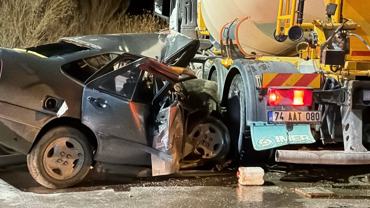 Ayhan ACAR/BARTIN, (DHA)- BARTIN'da beton mikseriyle çarpışan otomobilin sürücüsü Caner G., ağır yaralandı.