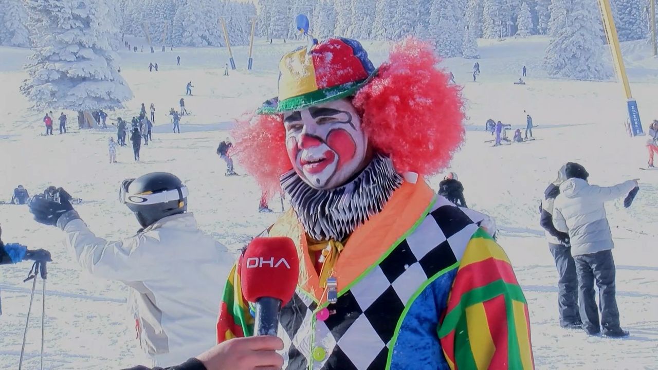 Kış turizminin önemli merkezlerinden, tatilcilerin 'Beyaz cennet' olarak adlandırdığı Uludağ, bu kez alışılmışın dışında bir misafiri ağırladı. Bursa'da profesyonel animatörlük yapan Mücahit Değirmenci, farkındalık yaratmak ve tatilcilere moral vermek amacıyla palyaço kostümünü giyip, kayak takımlarını kuşandı. Zirveye palyaço kıyafeti, makyajı ve peruğuyla çıkan Değirmenci, pistlerde kayarak turistleri eğlendirdi. Kar üzerinde kayan palyaçoyu gören yerli ve yabancı turistler, o anları cep telefonlarıyla kaydetti. Çocukların büyük ilgi gösterdiği Değirmenci, kayak yaparken bir yandan da kendisini izleyenleri selamladı.