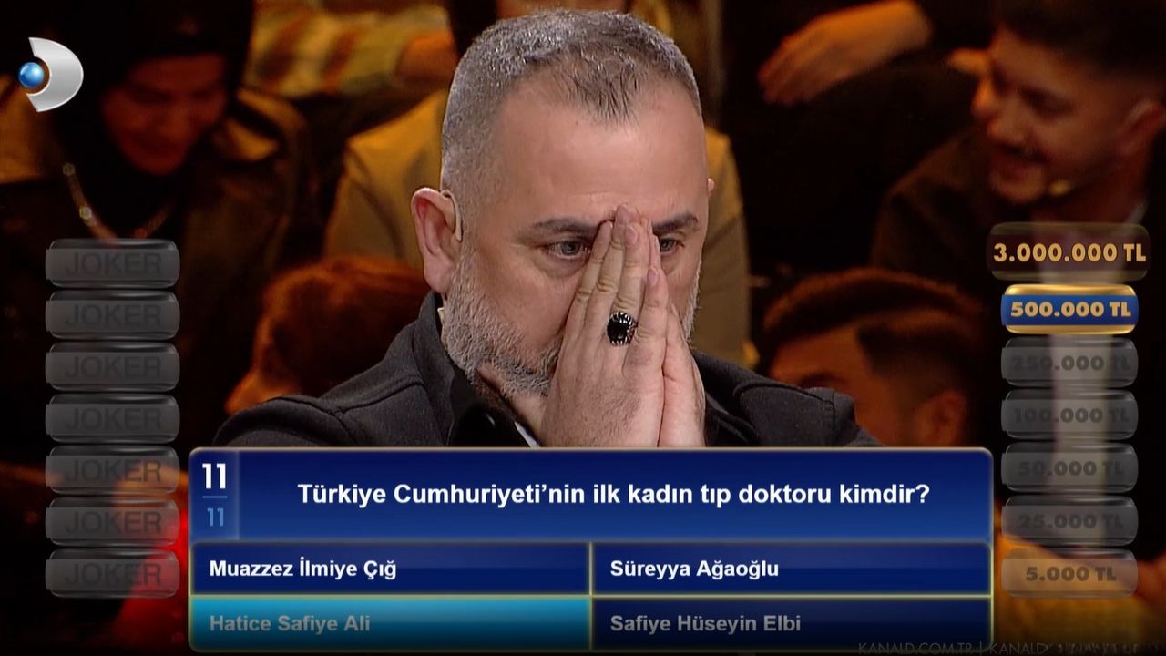 İSTANBUL, (DHA)- BEYAZIT Öztürk'ü yıllar sonra Kanal D ekranlarında izleyiciyle yeniden buluşturan Beyaz'la Joker, unutulmaz bir ana sahne oldu. Oto tamircisi Serdar Baltacı, 3 milyon TL'lik soru 'Türkiye Cumhuriyeti'nin ilk kadın tıp doktoru kimdir?'e Hatice Safiye Ali yanıtını vererek büyük ödülün sahibi oldu. Beyaz'la Joker tarihinde 3 milyon TL'yi kazanan ilk yarışmacı olan Baltacı, zafer anında duygularını, 'Tarih yazacağım dedim, yazdım' sözleriyle dile getirdi.