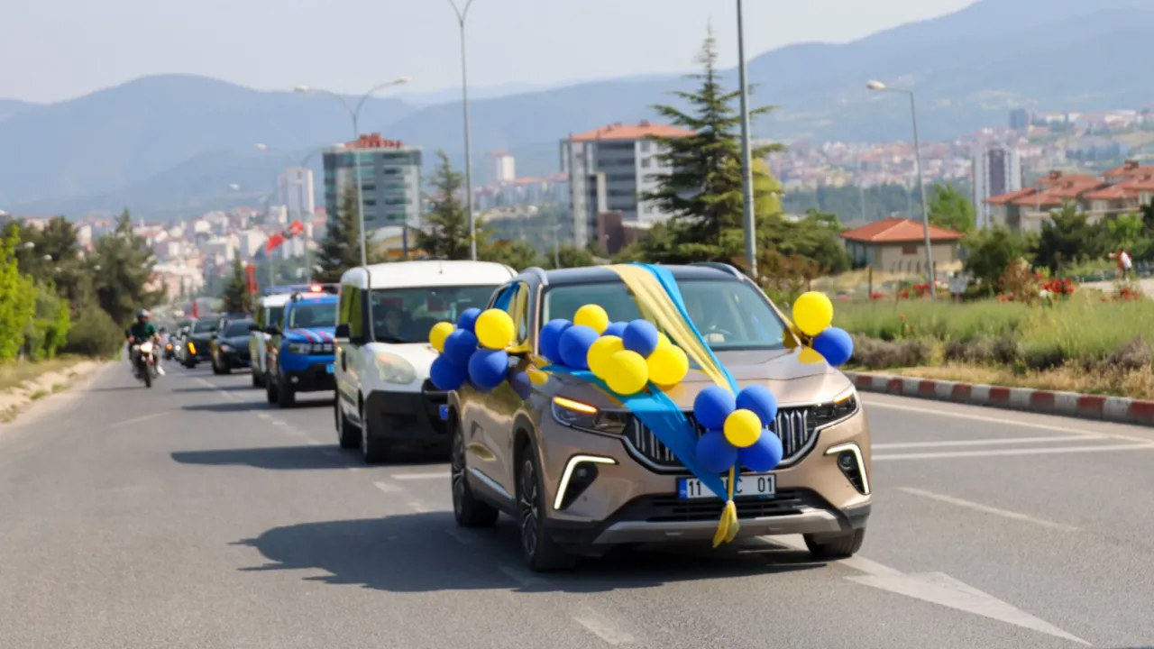 Kaan Badalov’un isteği üzerine sünnet aracı olarak Bilecik Valiliği tarafından tahsis edilen TOGG süslenirken, kortejde Emniyet ve Jandarma ekipleri de yer aldı. Siren sesleriyle hareket eden konvoy, anlamlı ve duygusal görüntülere sahne oldu.