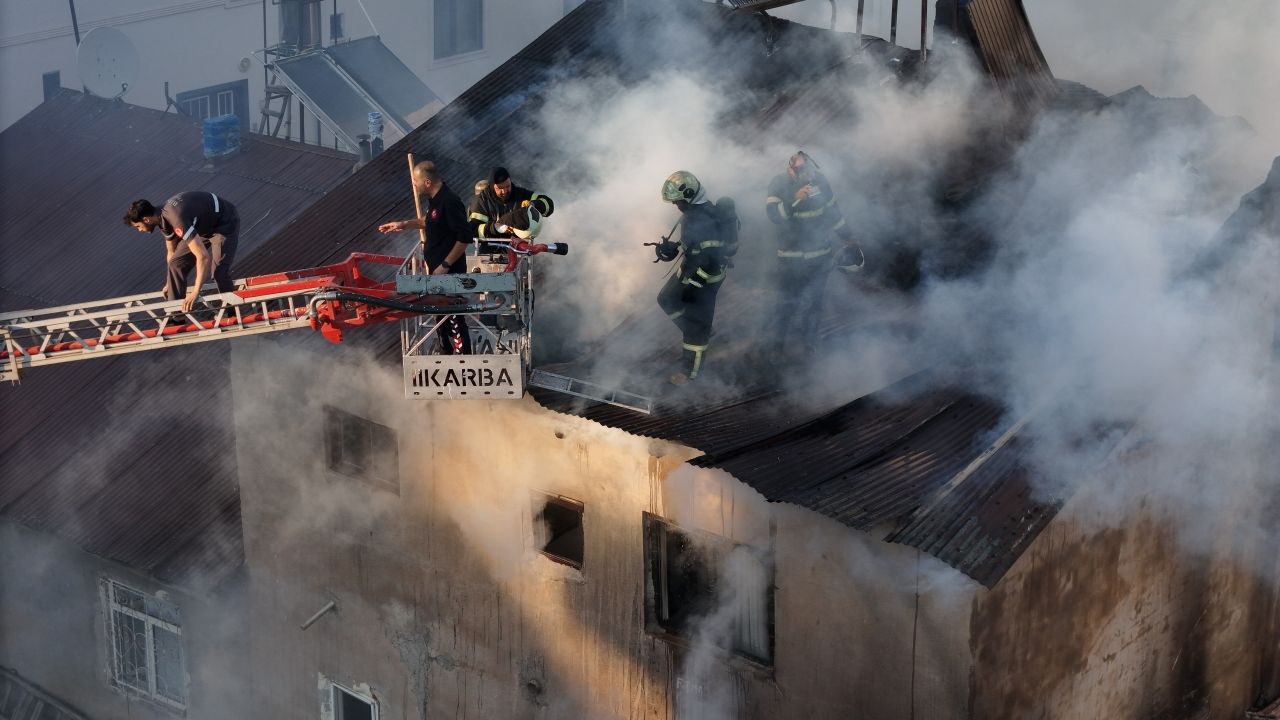 İnanlı Mahallesi'ndeki binanın çatı katında henüz belirlenemeyen nedenle yangın çıktı.