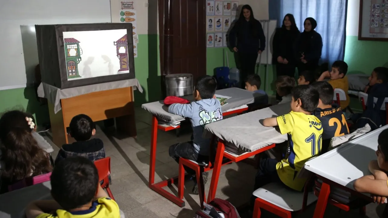 Bitlis'in Tatvan ilçesinde Valide Sultan Kız Mesleki ve Teknik Anadolu Lisesi Halkla İlişkiler ve İletişim Alanı öğrencileri, geleneksel gölge oyunu Hacivat ile Karagöz'ü köylerdeki okullarda sahneleyerek kültürel mirası yaşatıyor.ANKARA (İGFA) - Millî Eğitim Bakanlığının "Maarif Eğitim Modeli" kapsamında başlatılan sosyal sorumluluk projesinde gönüllü olarak yer alan öğrenciler, kültürel farkındalık oluşturmak amacıyla köylerdeki okullarda etkinlikler düzenliyor. Okuldaki atölyede geri dönüşüm malzemelerini kullanarak sahne dekorları, Hacivat ve Karagöz kuklaları hazırlayan öğrenciler, bu çalışmayı köylerdeki çocuklara ulaştırıyor.