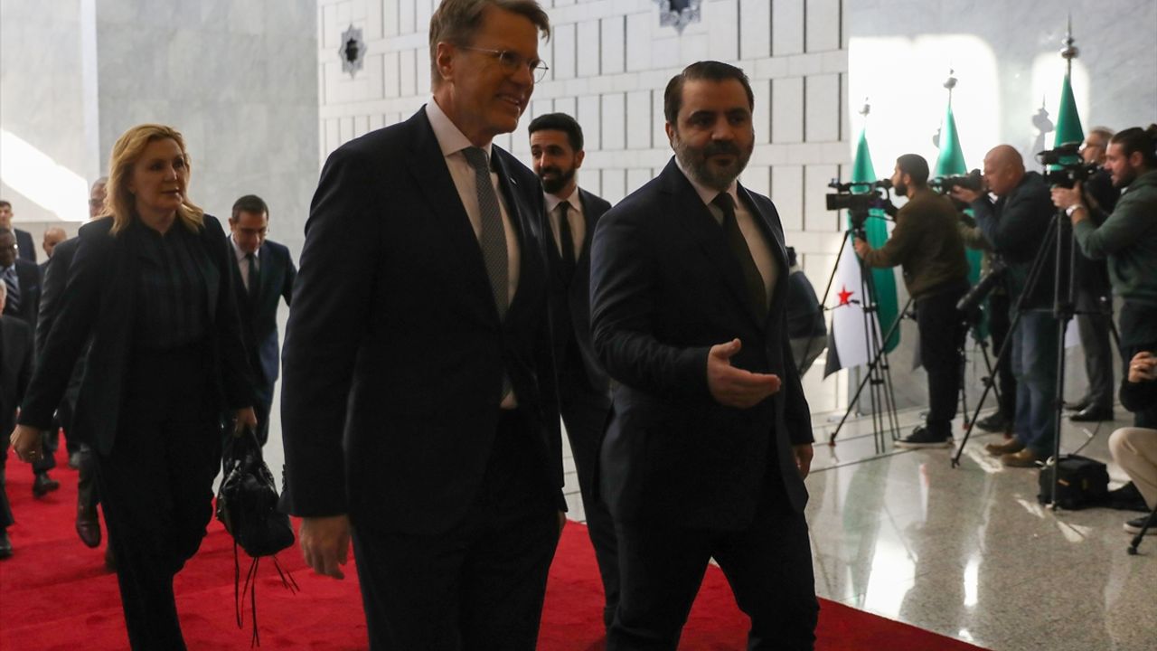 BMGK heyeti, 14 yıl aradan sonra ilk kez toplu şekilde Suriye'ye ziyarette bulunurken, Cumhurbaşkanı Şara'ya Dışişleri Bakanı Esad Hasan Şeybani ve bazı kabine üyeleri eşlik etti.