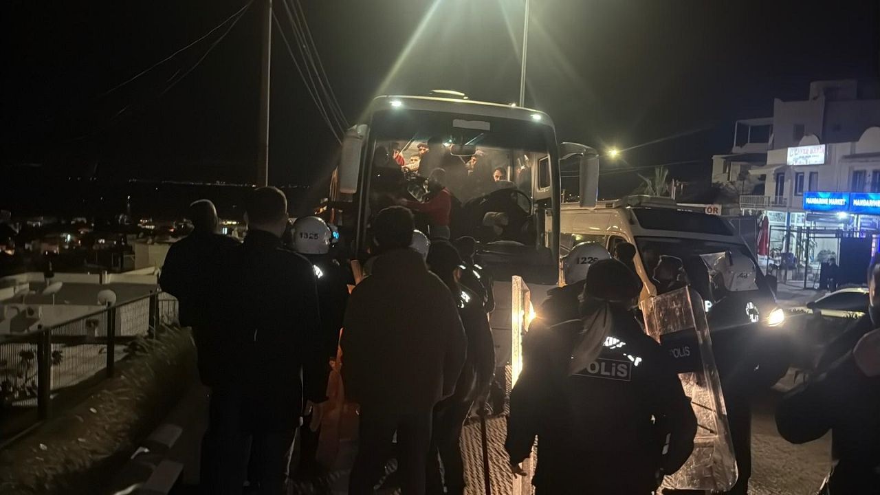 Fırat AKAY / BODRUM, (DHA)- BODRUM FK 1'inci Lig 18'inci hafta mücadelesinde evinde ağırladığı Amedspor ile 0-0 berabere kaldı. Karşılaşma öncesi iki takım taraftarı arasında arbede çıktı. Taraftarlar birbirlerine şişe attı, polis ekipleri araya girerek tarafları sakinleştirdi. Maçın ardından stadı terk eden taraftarlar arasında yaşanan gerginlik devam etti. Hasan Reşat Öncü Caddesi'nde toplanan taraftarlar karşılıklı tezahürat yaptı. Polis ve jandarma ekipleri taraftarlar arasında barikat kurarak gerilimin artmasını engelledi. Bölgede TOMA hazır bekletildi. Öte yandan, hareket halinde olan içerisinde taraftarların olduğu otobüsün ise camına taş atıldı ve cam kırıldı. Polis ve jandarma ekiplerinin uzun uğraşları sonrası yoğunluk güvenlik önlemleri arasında Amedspor taraftar otobüsleri bölgeden ayrıldı.