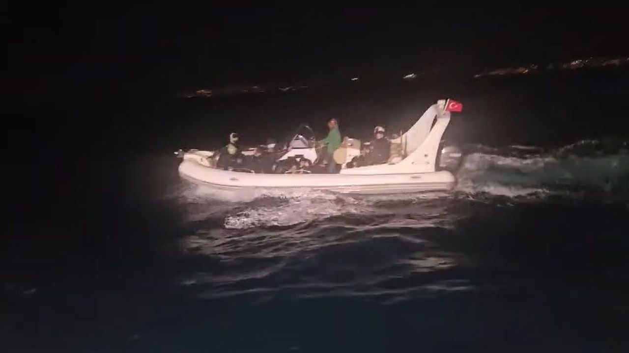 Fırat AKAY/ BODRUM(Muğla), (DHA)- MUĞLA'nın Bodrum ilçesinde, yasa dışı yollarla yurt dışına çıkmaya çalışan aralarında çocuklarında bulunduğu lastik bot içerisindeki 21 kaçak göçmen ile 1 göçmen kaçakçısı şüphelisi Sahil Güvenlik Komutanlığı ekipleri tarafından yakalandı.
