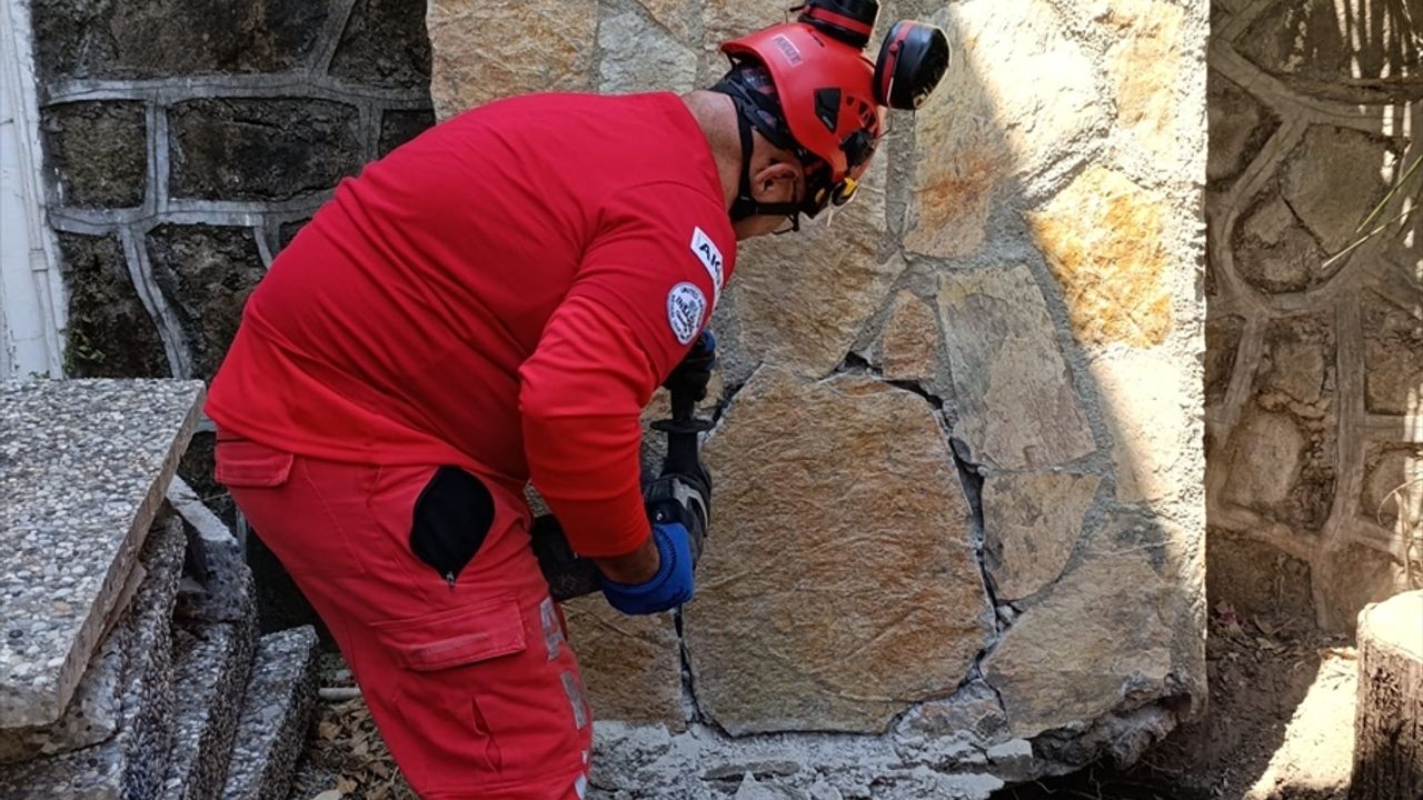 MUĞLA (AA) - Muğla'nın Bodrum ilçesinde, apartmanın duvar boşluğunda mahsur kalan kedi, ekiplerin çalışması sonucu kurtarıldı.