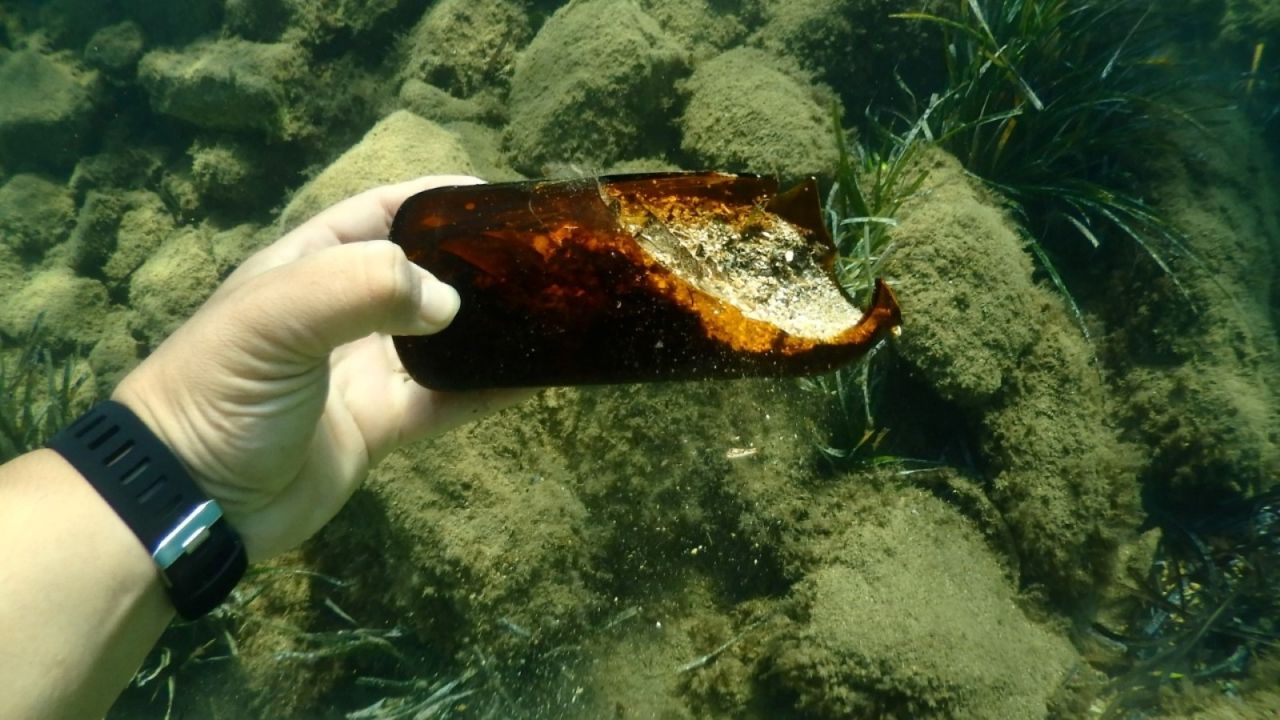 MUĞLA (AA) - Muğla'nın Bodrum ilçesinde deniz dibinden 62 kilogram atık çıkarıldı.