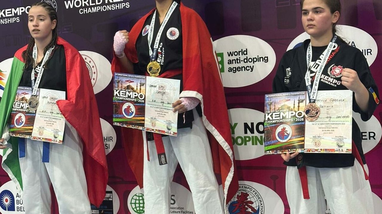 Fırat AKAY / BODRUM, (DHA)- ULUSLARARASI Kempo Federasyonu tarafından düzenlenen 22'nci Dünya Kempo Şampiyonası'nda mücadele eden Bodrumlu Sahra Çifçi, altın madalya kazanarak dünya şampiyonu oldu. Antalya'nın Kemer ilçesinde gerçekleştirilen organizasyonda 60 kilogram Semi-Kempo branşında genç sporcu, sergilediği üstün performansla rakiplerini geride bırakmayı başardı. Final müsabakasından galibiyetle ayrılarak kürsünün zirvesine yerleşen Çifçi, Türkiye'ye büyük bir gurur yaşattı. Dünya şampiyonu olan Sahra Çifçi'nin, Bodrum Ayşe Gülsevim Ali Rüştü Kaynak Anadolu Lisesi 12'nci sınıf öğrencisi olduğu belirtildi. Genç yeteneğin başarısı spor camiasında ve okulunda sevinçle karşılandı.