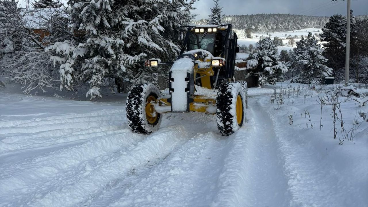 Bolu'da İl Özel İdaresi ekipleri, kentin yüksek kesimlerinde yaklaşık 40 santime ulaşan karlı kaplı köy yollarını açık tutmak için 116 personel ve 61 araçla çalışmalar sürüyor. İş makineleri ve greyderlerle kar küreme çalışmaları yürütülüyor. Kentte kapalı köy yolu bulunmazken 24 saat aralıksız olarak ekipler görevlerini sürdürüyor. (DHA)